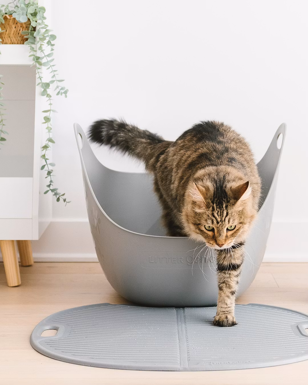 Litter Genie®-mattan är suverän för ditt husdjurs komfort och den motverkar spridningen av kattsand på golvet. Det inbyggda handtaget gör rengöringen enkel. Vik ihop och häll ut det uppsamlade kattsanden.